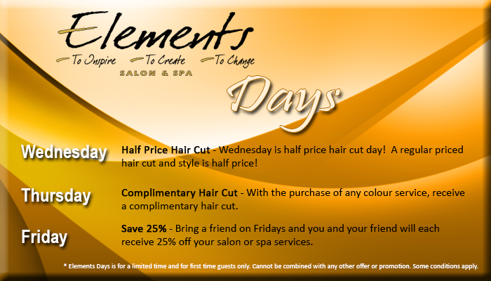 NEW Clients! SAVE $10 off SPA Services on Elements Days!